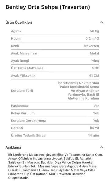 Takım içeriğinde 1 adet Bentley Treverten Orta Sehpa bulunmaktadır.