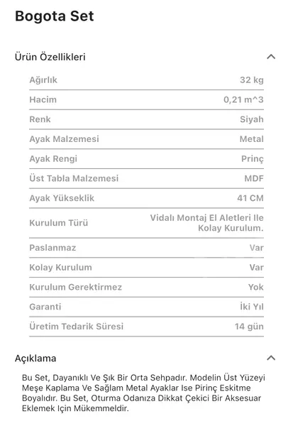 Takım içeriğinde 1 adet Bogota Siyah Orta Sehpa bulunmaktadır.