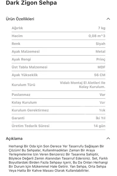 Takım içeriğinde 1 adet Dark Zigon Sehpa bulunmaktadır.