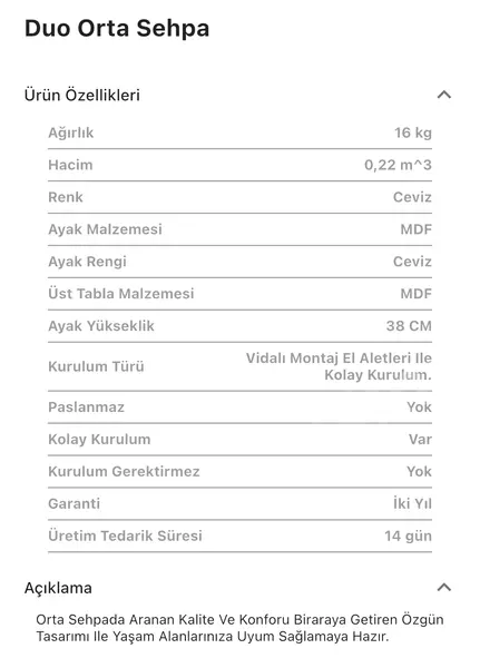 Takım içeriğinde 1 adet Duo Orta Sehpa bulunmaktadır.