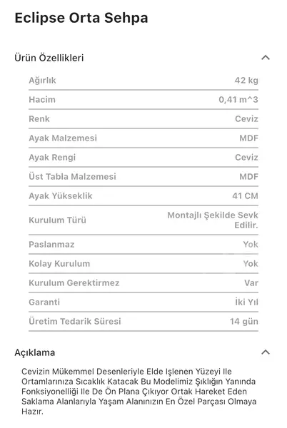 Takım içeriğinde 1 adet Eclipse Orta Sehpa bulunmaktadır.