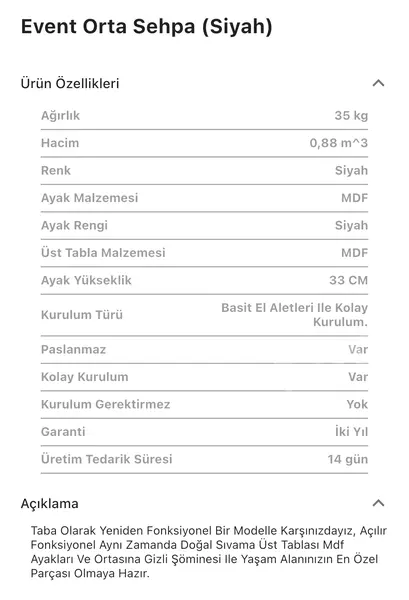 Takım içeriğinde 1 adet Event Siyah Orta Sehpa bulunmaktadır.