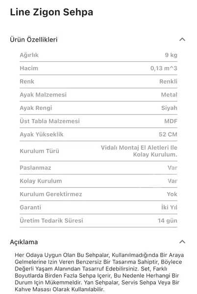 Takım içeriğinde 1 adet Line Zigon Sehpa bulunmaktadır.