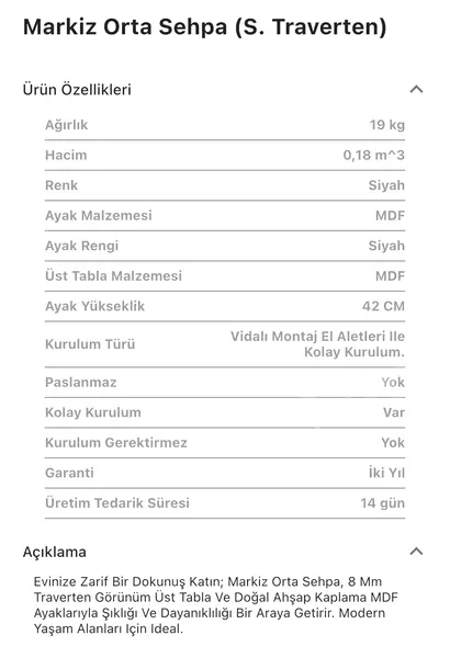 Takım içeriğinde 1 adet Markiz Traverten Orta Sehpa bulunmaktadır.