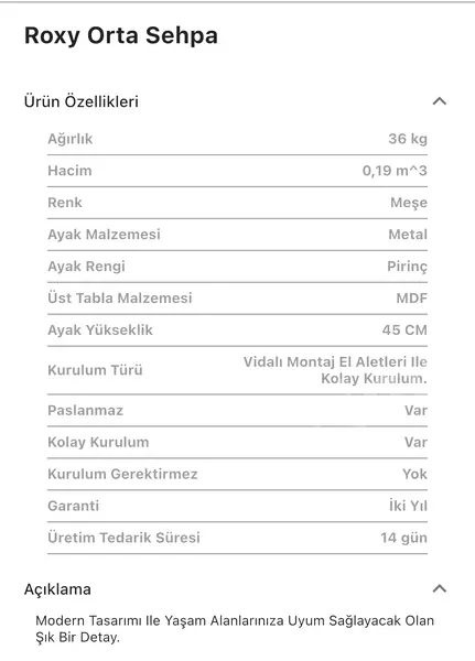 Takım içeriğinde 1 adet Roxy Orta Sehpa Seti bulunmaktadır.