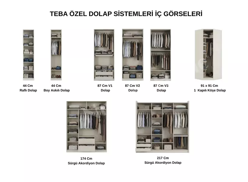 174 Cm 3 Kapılı Akordiyon Kapaklı Dolap